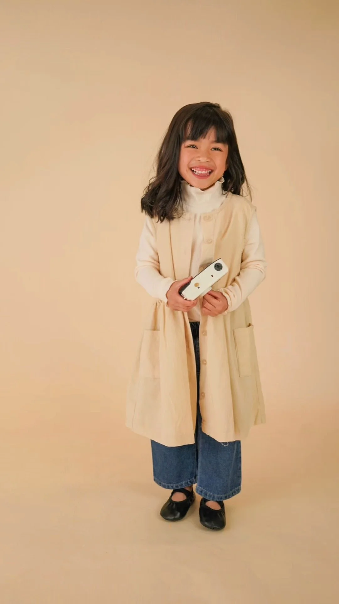 Model is age 3, 40” tall, wearing size Medium in Cream for oversized look to grow into