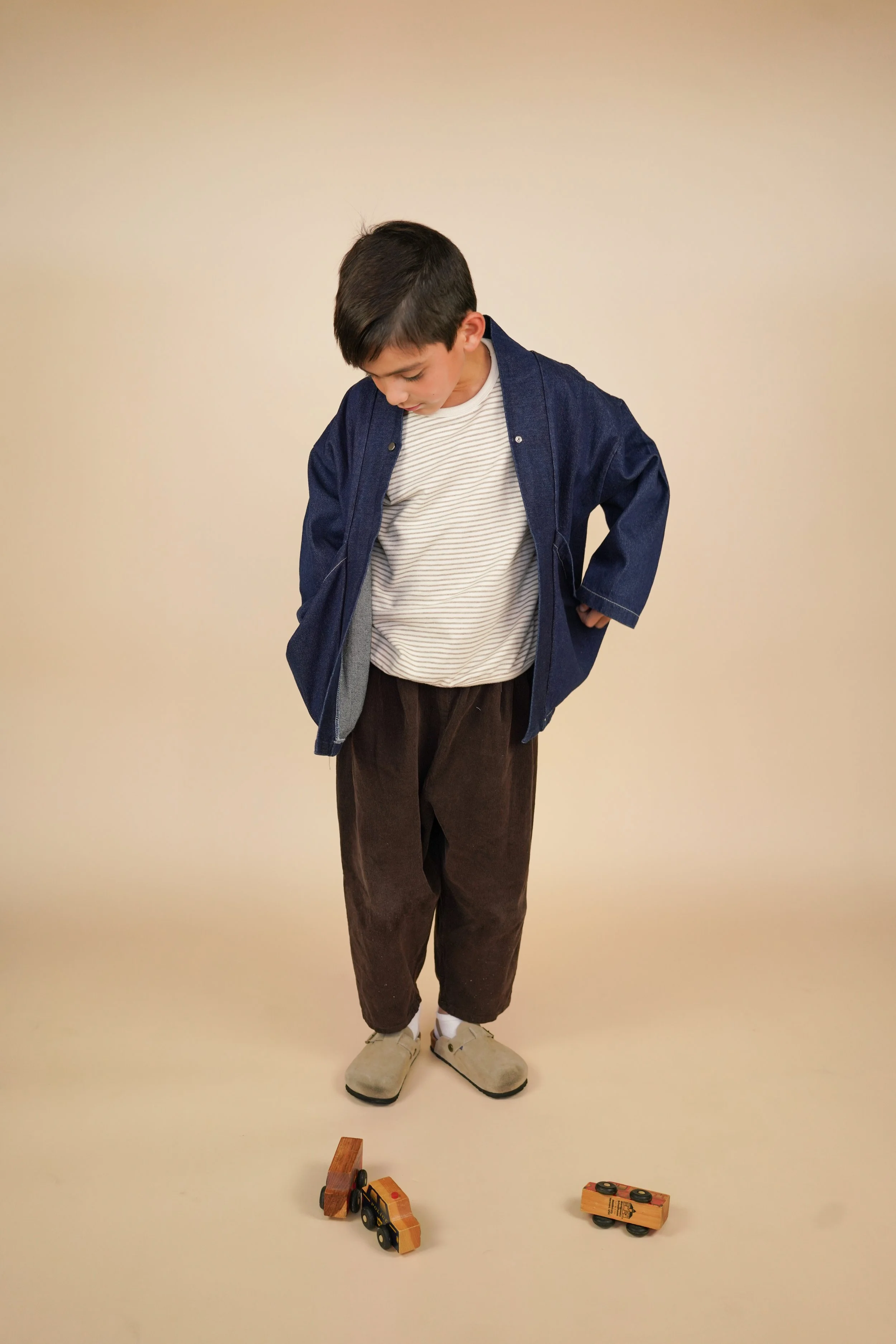 Model is age 3, 39” tall, wearing size Medium in Light Grey for oversized look to grow into